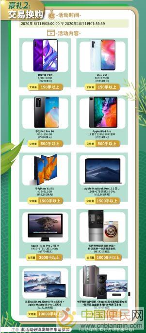交易换购(例如完成500手即可获得华为新款P40 pro)